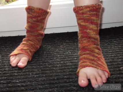 seit heute morgen fungieren sie -per Schnere um ihre Spitze beraubt- als Sonntags-Pediküresocken für Frollein Erdnuss. Die bekommt nämlich immer, wenn sie sich ohne Theater die Zehennägel schneiden lässt, einen kleinen Glitzer drauf. Und musste bisher jämmerlich frieren, bis der Kram getrocknet war.