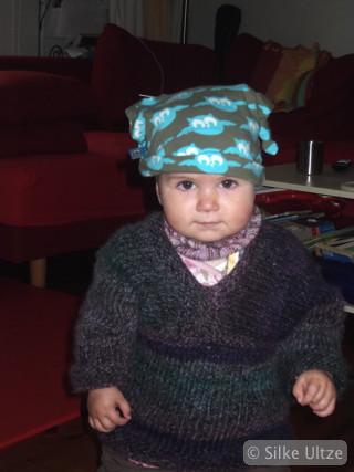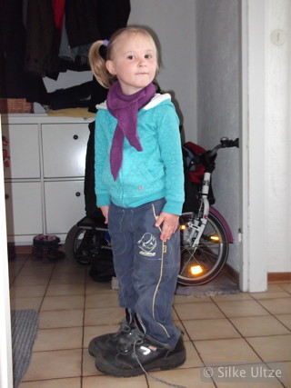 Stolz wie Bolle saß sie auf dem Hocker und ließ die Prozedur über sich ergehen. Ich bin aber froh, dass sie Locken hat, denn sie hat natürlich trotz Spaß nicht wirklich stillgehalten – bei glatten Haaren würde es jetzt glaube ich seeeehr selbstgeschnitten aussehen… So ist es aber prima geworden – bis auf den Pony, das hätte ich mir mal lieber sparen sollen. Aber dafür haben wir eine reichlich große Haarspangensammlung und können das wieder wegtarnen.