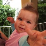 Das ist sooooo süß, wie sie sich an den Gartenmöbeln entlanghangelt. Oder ins Spielhäuschen geht, Tür zu, einmal „guckuck“ aus dem Fenster, Tür wieder auf, nochmal „guckuck“ und wieder von vorne.