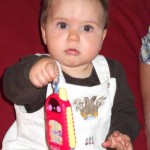 Dafür ist im Moment Sprache dann nicht so wichtig…vor ein paar Wochen waren „Mama“, „Papa“, „Hallo“, „Klick-Klack“ in regem Gebrauch, und auch der Name der Schwester sowie einige andere Wörter wurden gelegentlich nachgeplappert. Im Moment ist fast alles „Kräck!“