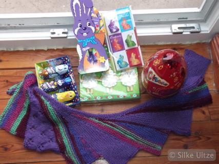 Fotos am Fuß gibt´s noch nicht, aber bei Petra könnt ihr sie schon bewundern. Und weil Petra Petra ist, hat sie natürlich nicht nur die tollen Socken geschickt, sondern auch noch Naschkram für die versammelte Weibermannschaft hier im Hause und eine ganz süße Karte.