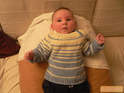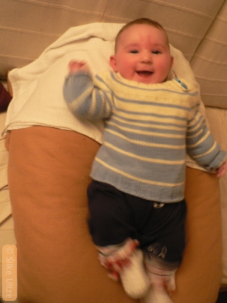 Also ganz schnell was „vorgeburtlich“ gestricktes vorgezeigt! (Nein, seitdem hatte ich keine Nadeln mehr in der Hand, danke der Nachfrage… aber ich plane, das heute noch zu tun, falls das Kind mich lässt!)